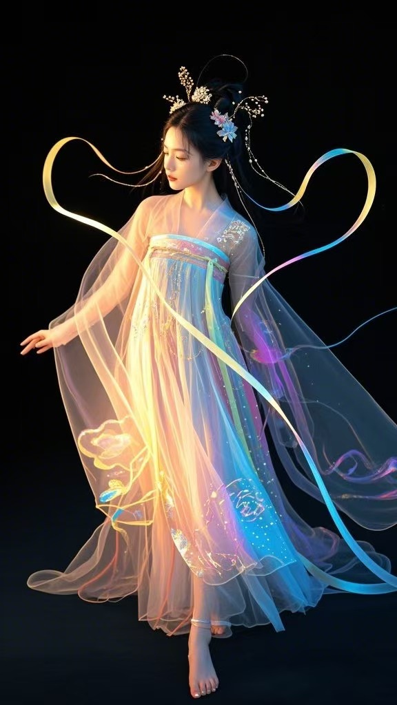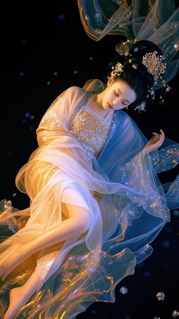 分享一组国潮美如仙女的Prompt和视频效果,AI实现了很多有创造想象没实际实现技术的人的梦想,图片效果参考如下