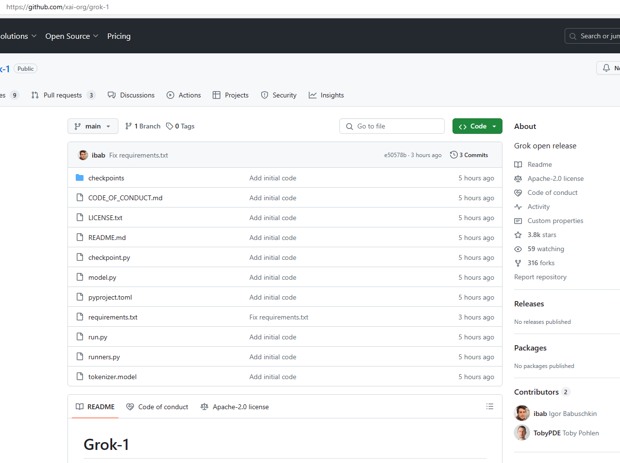 2024年3月18日,Elon Musk 掌舵的 AI 初创公司 xAI Corp. 以开放源代码的形式发布了其 Grok-1 大语言模型(LLM)的权重和架构,该模型采用 Apache 2.0 许可证。