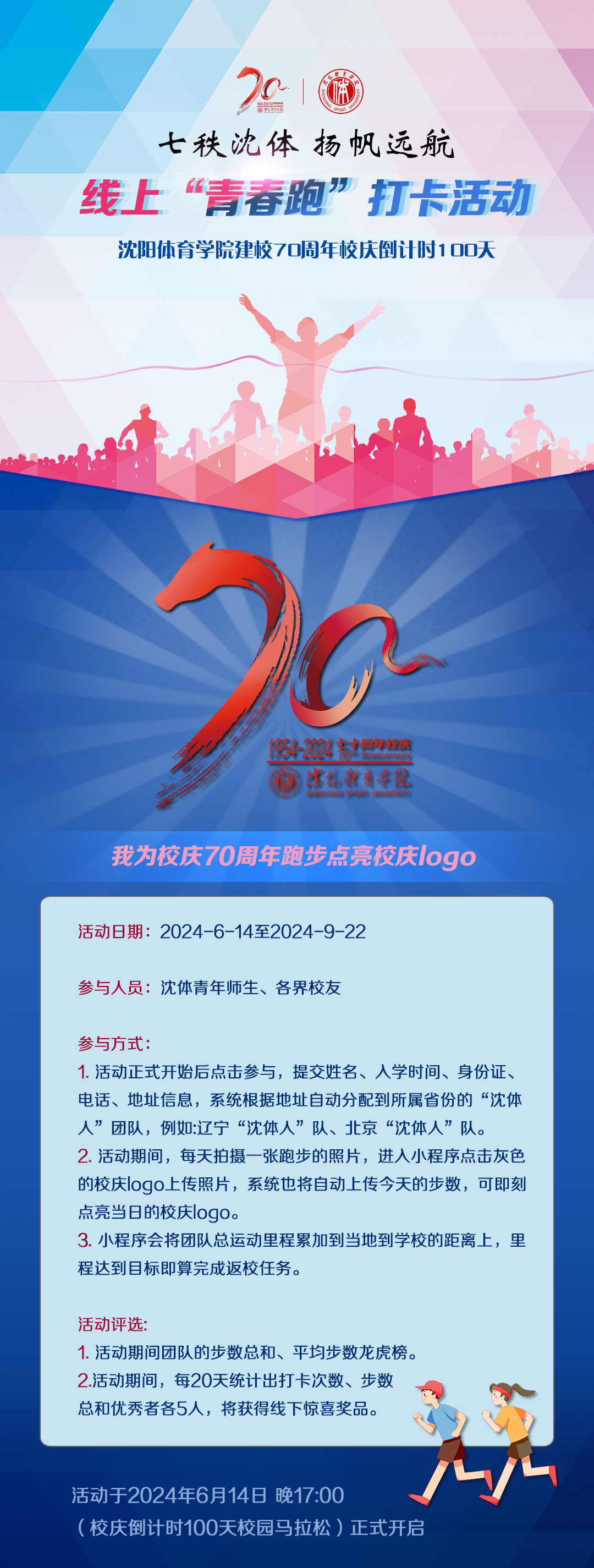 沈体70周年校庆倒计时100天“青春跑”在线打卡开启啦!