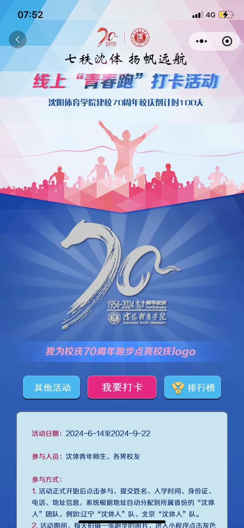 沈体70周年校庆倒计时100天“青春跑”打卡正式开始啦