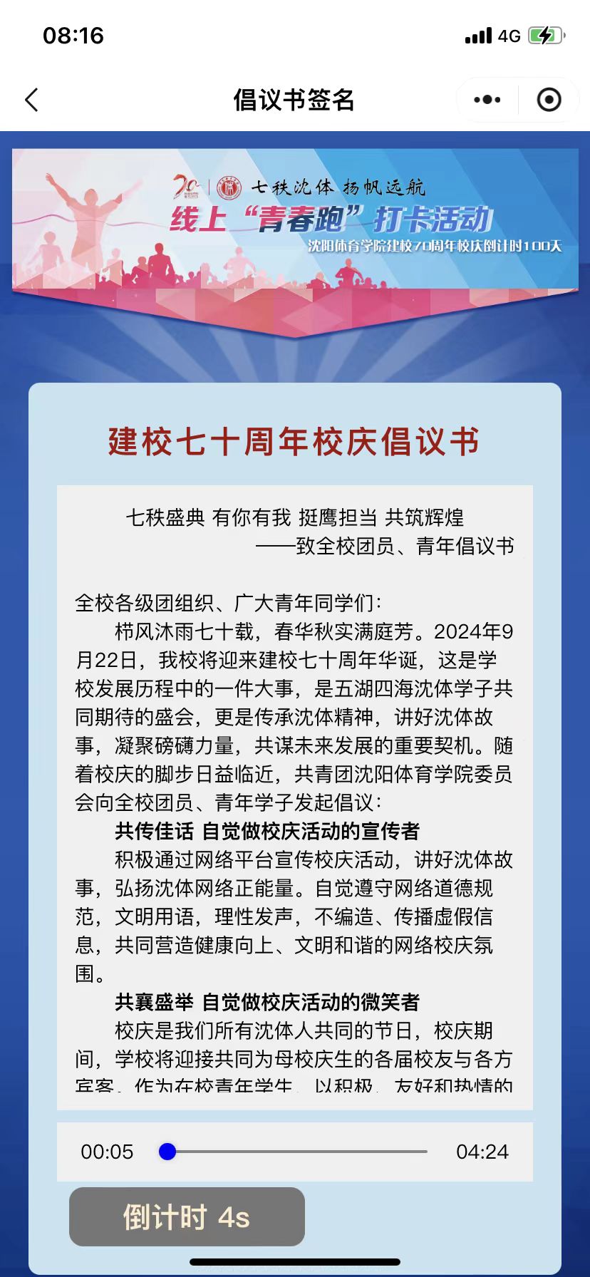 沈体70周年校庆倡议书和云头像活动开启啦
