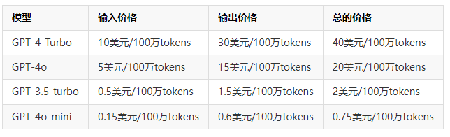 GPT-4o mini模型价格