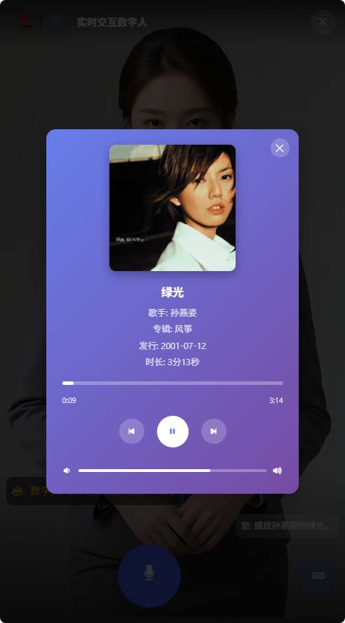 实时语音数字人支持歌曲点播功能