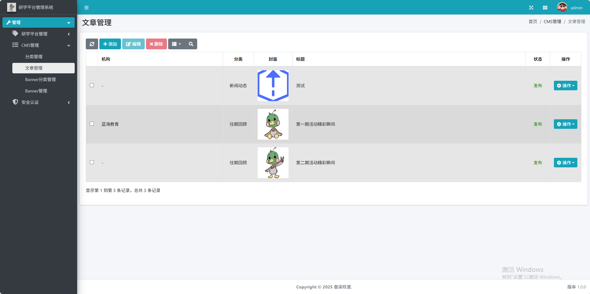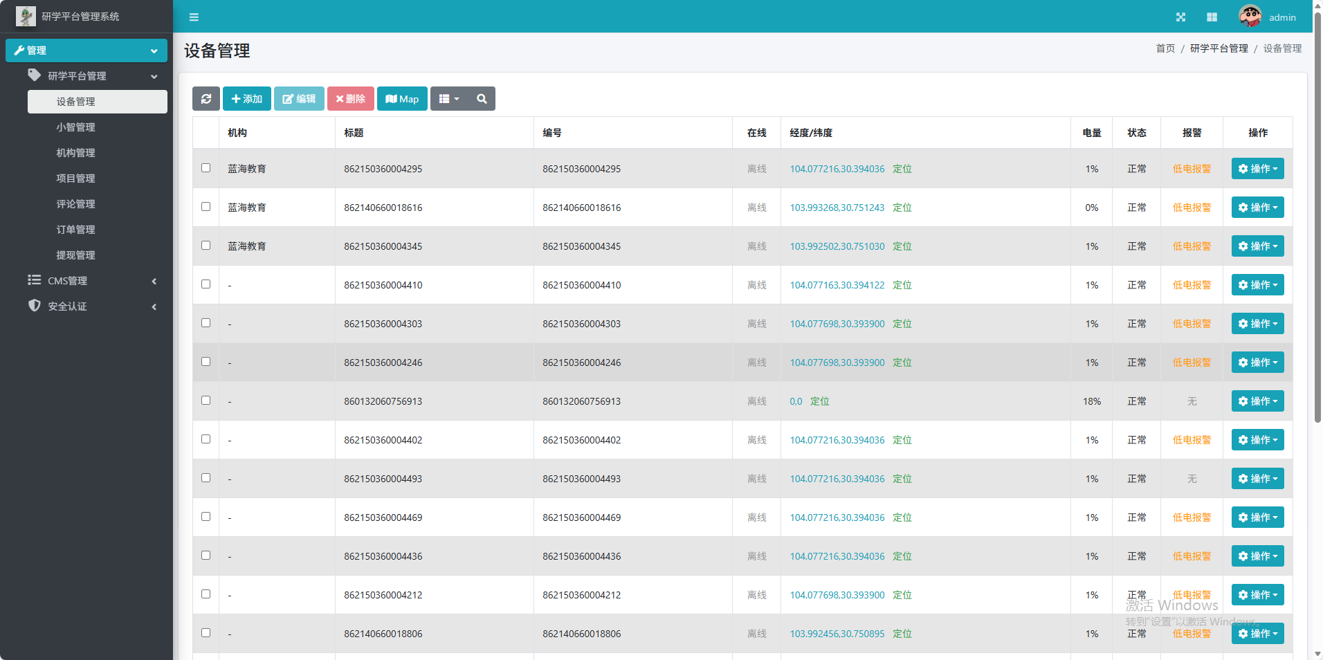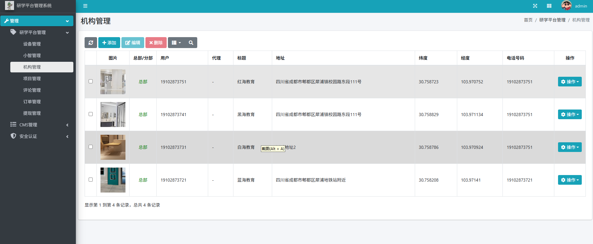 研学系统平台测试(带北斗定位和小智联动),角色支持平台端、机构端和学员用户端