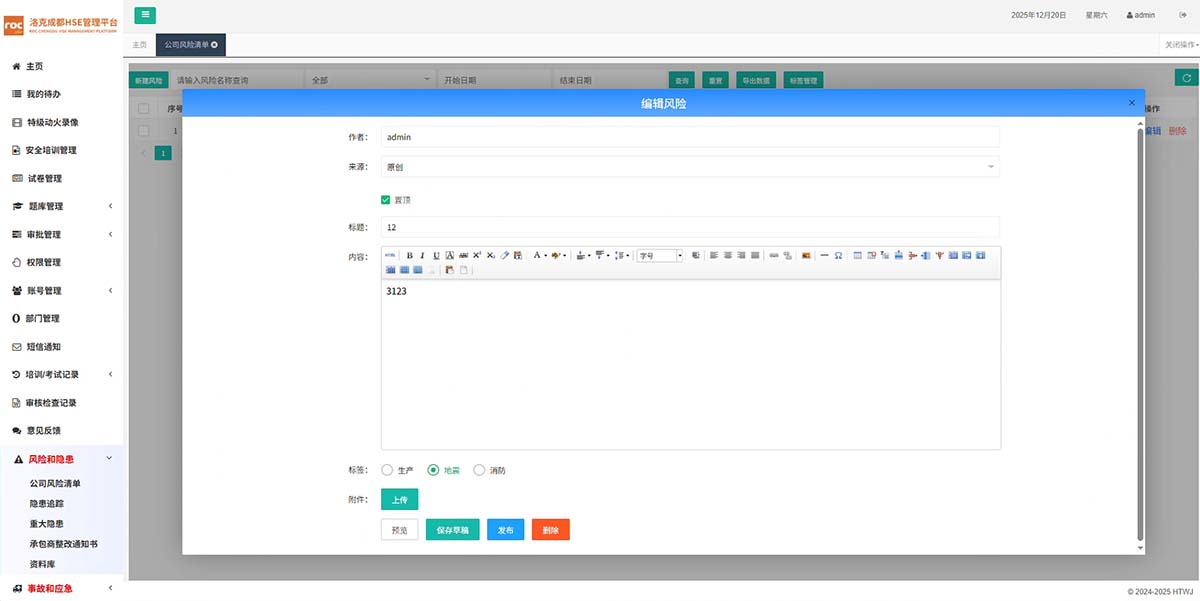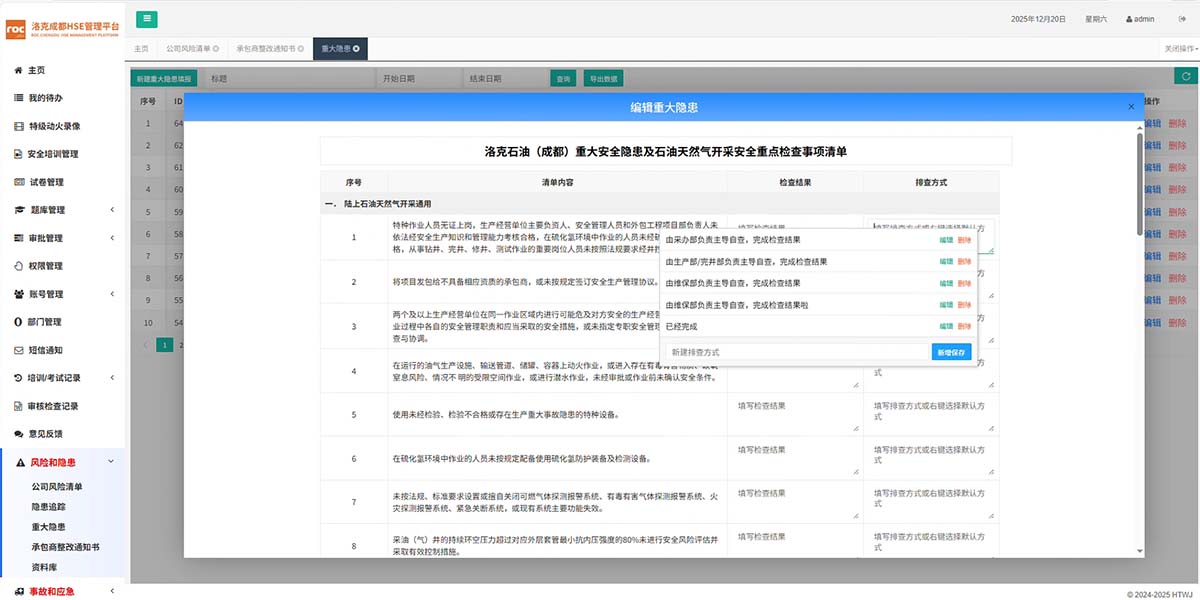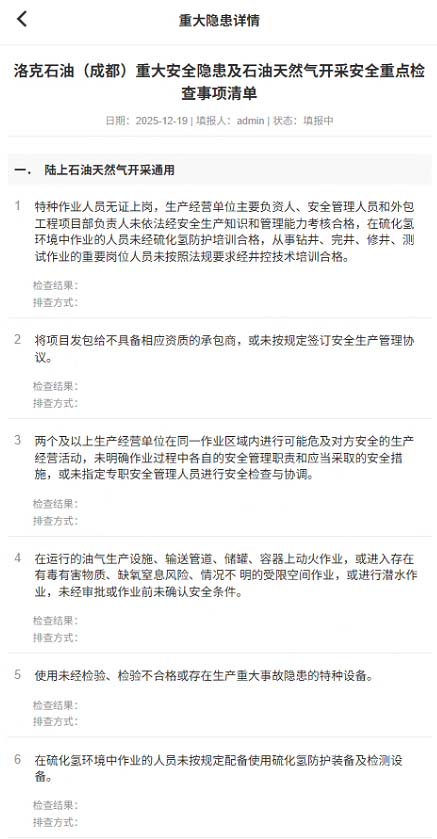 洛克石油HSE管理系统II期完成开发测试进行试运行,系统含PC端和移动端