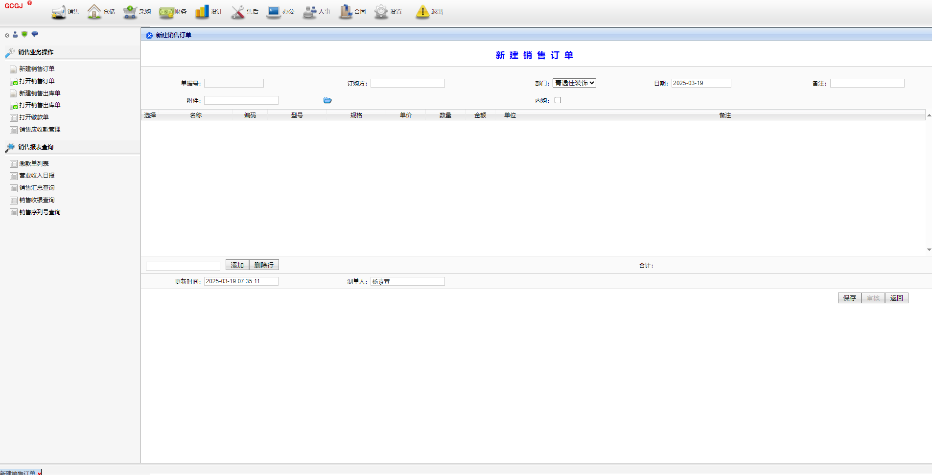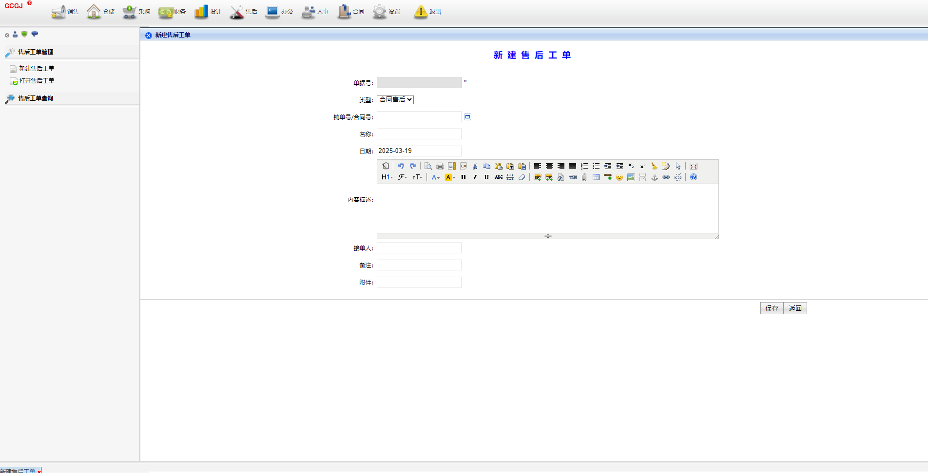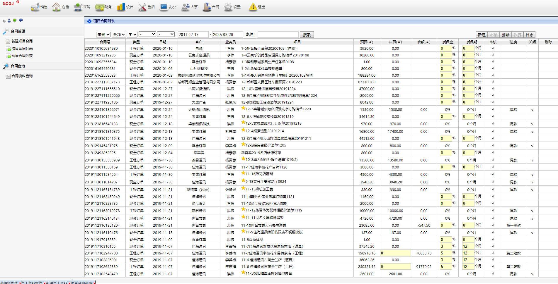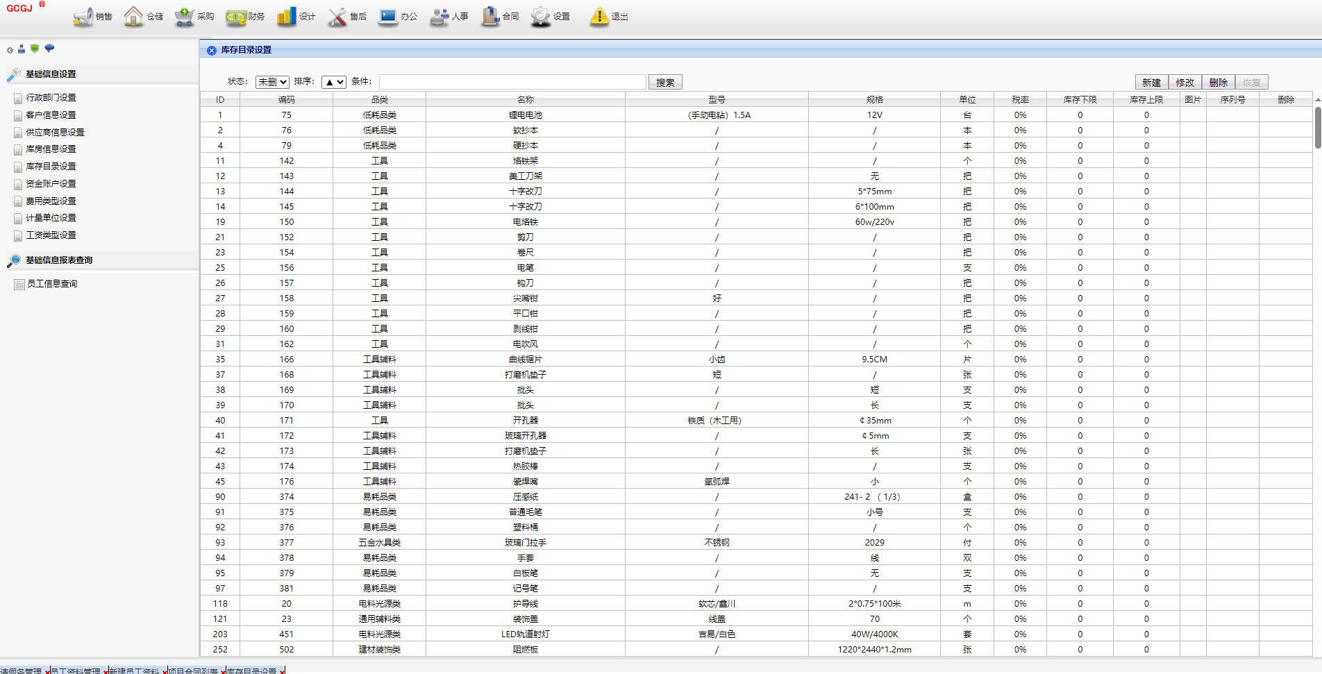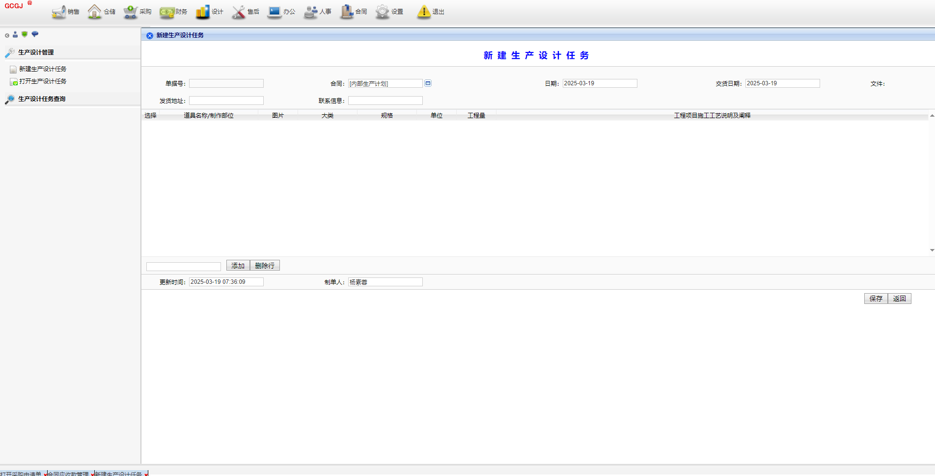 中小工厂全业务管理系统,10年前版本,包括销售、仓储、采购、财务、设计、售后、办公、人事、合同、基础设置、系统设置等模块,满足日常经营管理业务需求。