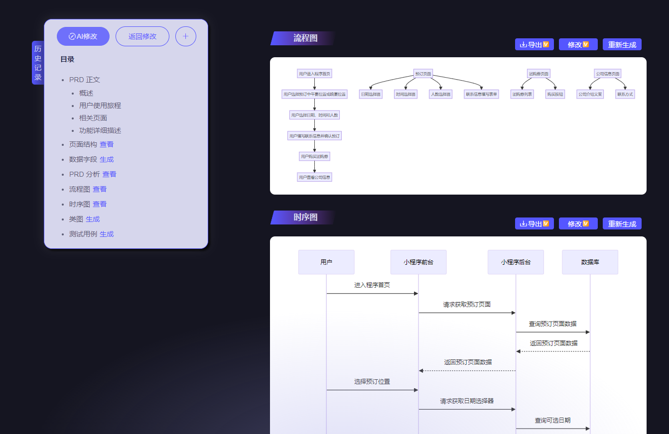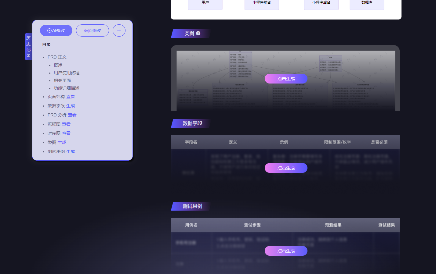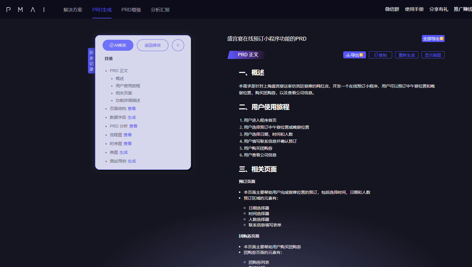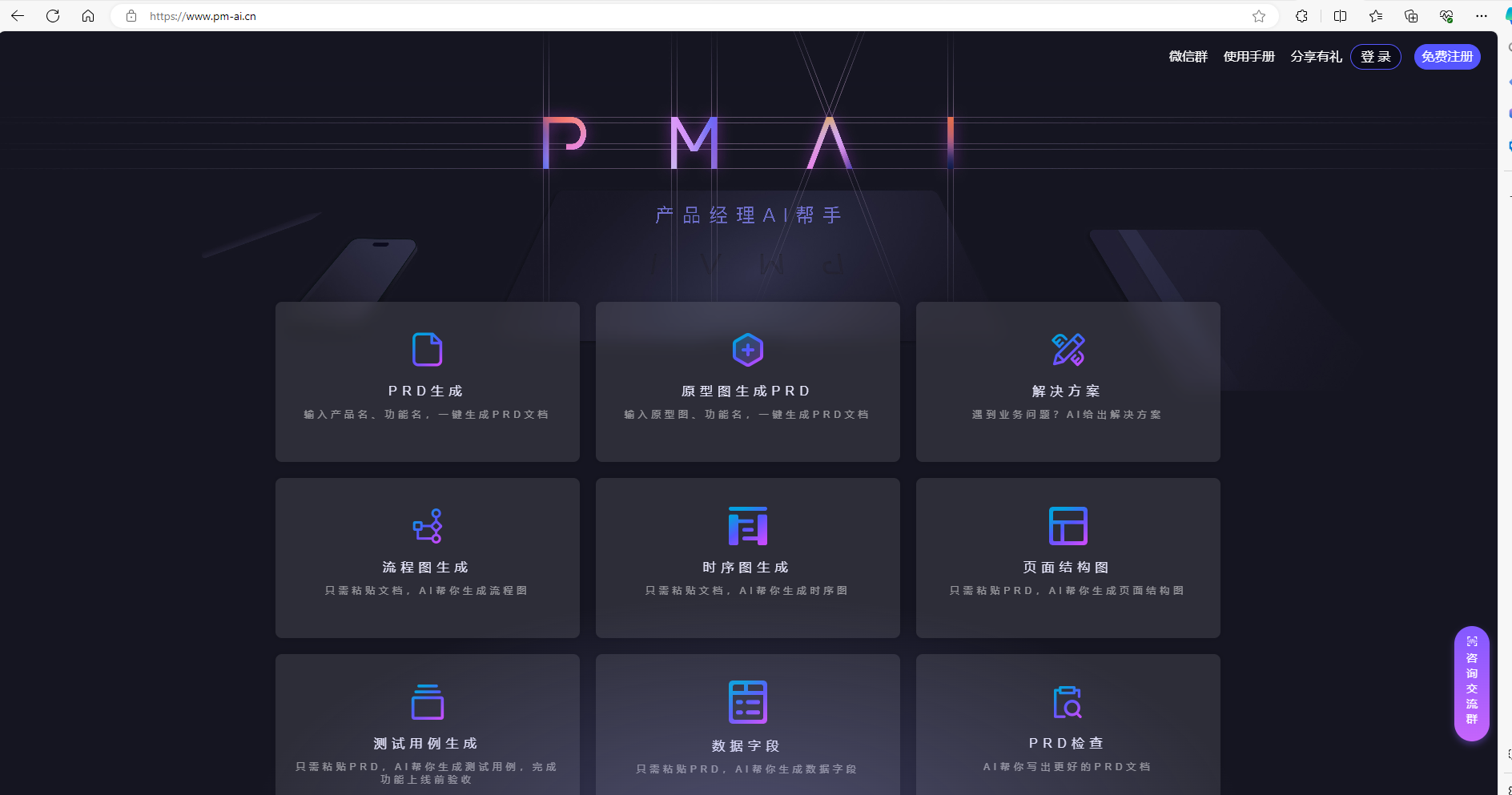 软件产品经理小帮手Pm-ai效果,可以做一些小项目或者分解到子任务、子模块使用,可以做参考,提供一个粗框架