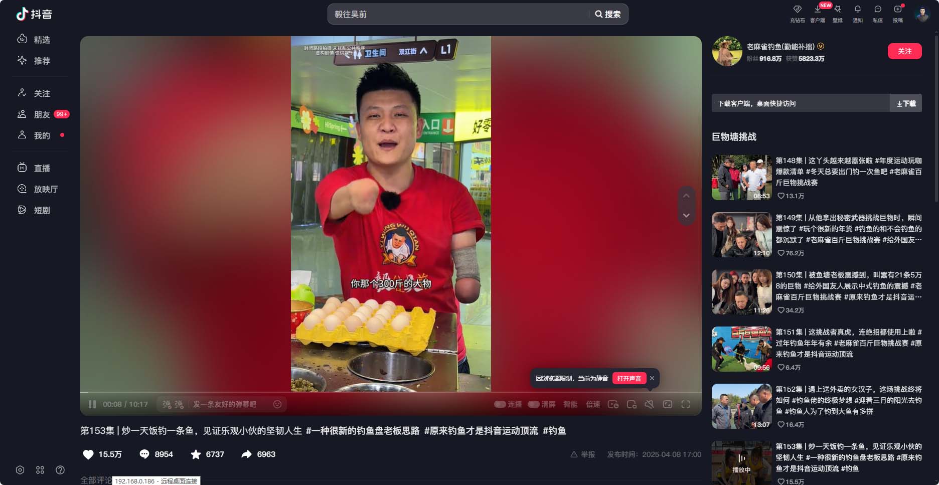 视频地址:6.17 复制打开抖音,看看【老麻雀钓鱼(勤能补拙)的作品】炒一天饭钓一条鱼,见证乐观小伙的坚韧人生 # 一种... https://v.douyin.com/rHTjN58rZ1c/ 06/05 nQK:/ L@W.zT
