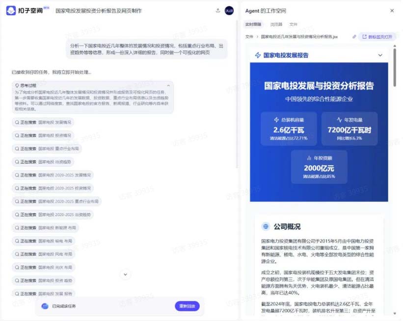 扣子空间是什么?“ 它是你和AI Agent协同办公的最佳场所 。在扣子空间里,精通各项技能的‘通用实习生’,各行各业的‘领域专家’,任你选择。” 扣子空间是类似Manus、Genspark的通用Agent。在扣子空间,你只需要把任务给它就行,剩下的全部由它自己完成。提示词不用写了,模型不用选了,工作流不用搭了,工具插件也不用管了……扣子空间,自会帮你解决一切。而且还支持各种MCP,比如飞书多维表格、高德地图、图像工具、语音合成等。
