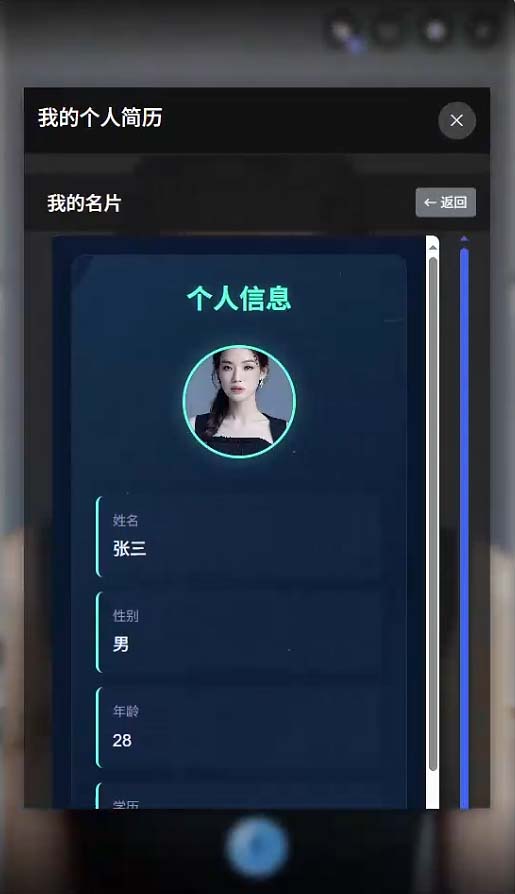 可以直接和求职人的数字分身直接对话,支持语言切换,可以方便的查看求职人的图、文、视频信息,助力毕业季求职