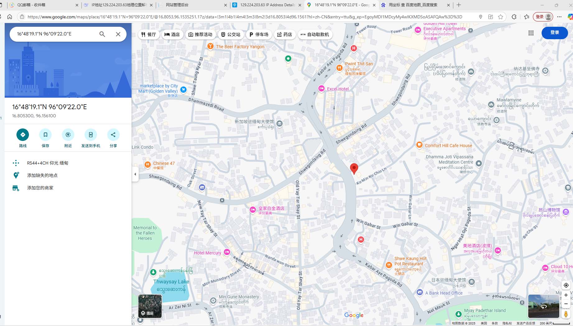 看世界地图还是Google,一个IP,百度地图定位在国内,Google定位在仰光~