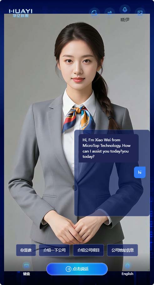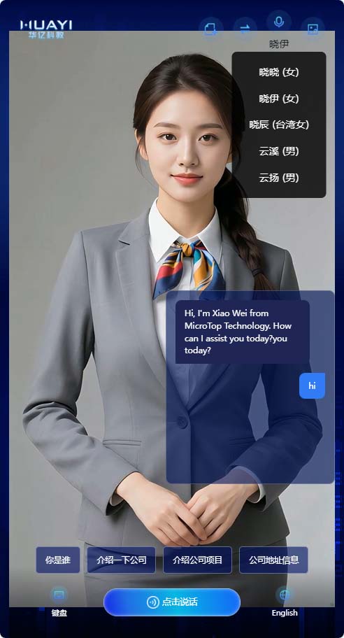新增快捷问题回复,数字人形象实时切换,语音音色选择(EdgeTTS),中英文语言支持,新启话题等