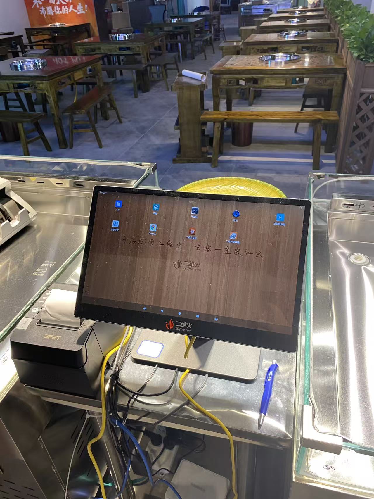 中江家乡人鲜毛肚火锅使用二维火管理店面,包括主收银、副收银、电子秤、后台管理、厨打、手机端收银等