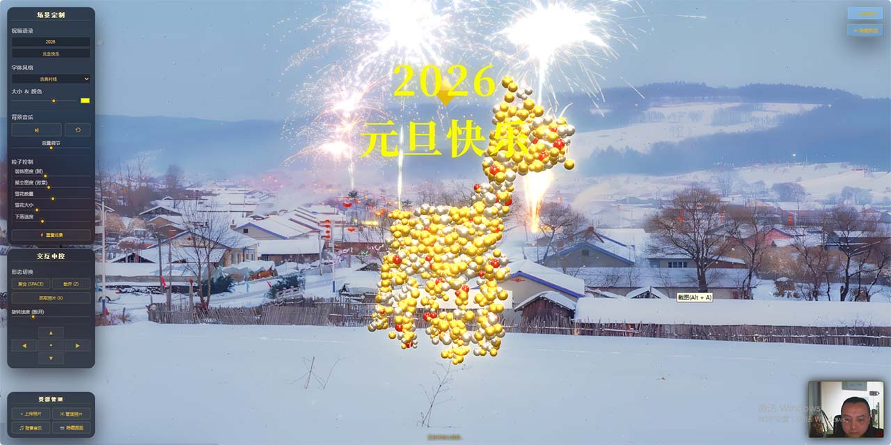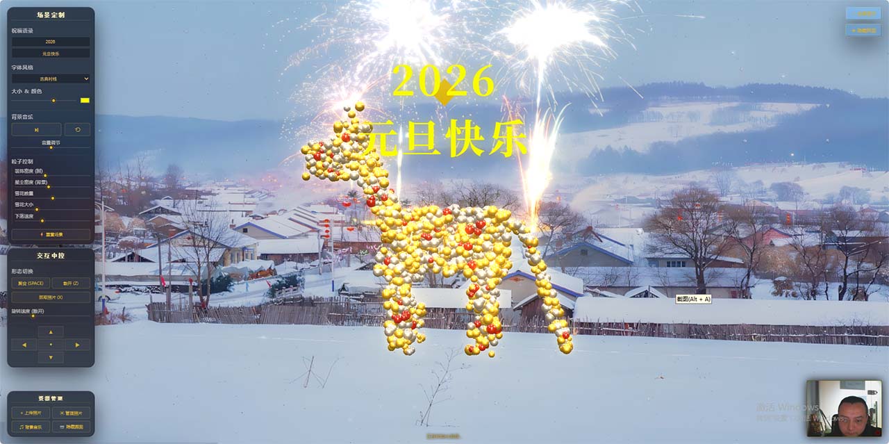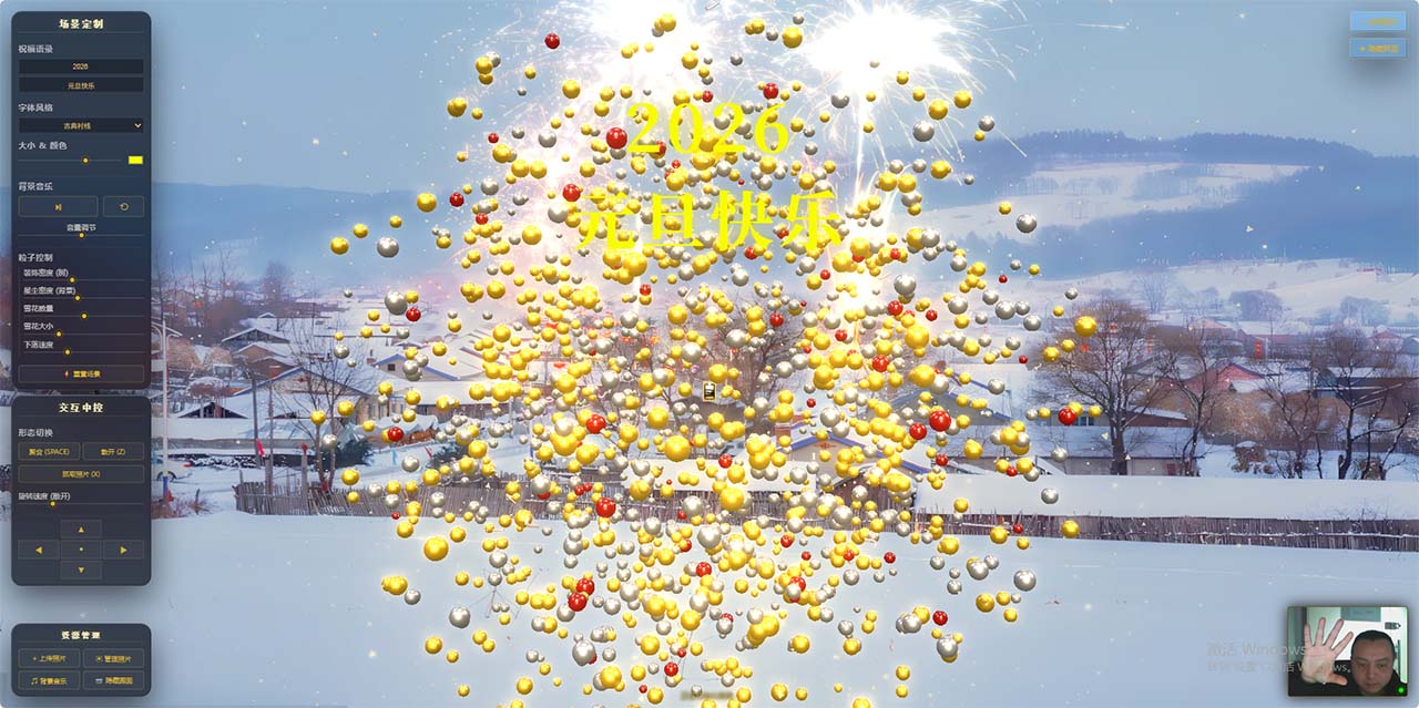 3D手势识别祝福元旦快乐效果,马儿的形状有点拉跨