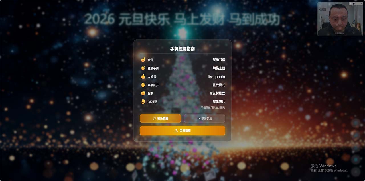 基于3D手势识别的圣诞树交互系统效果,指尖挥动画圣诞!3D 手势识别圣诞树交互页,PC / 手机双端适配,N 卡加持更流畅。标题、书信随心改,风格切换秒换氛围,背景音乐一键沉浸。照片拖拽自定义、点赞互动超有趣,聚合打散特效拉满圣诞仪式感。IIS 部署 + SSL 加密。