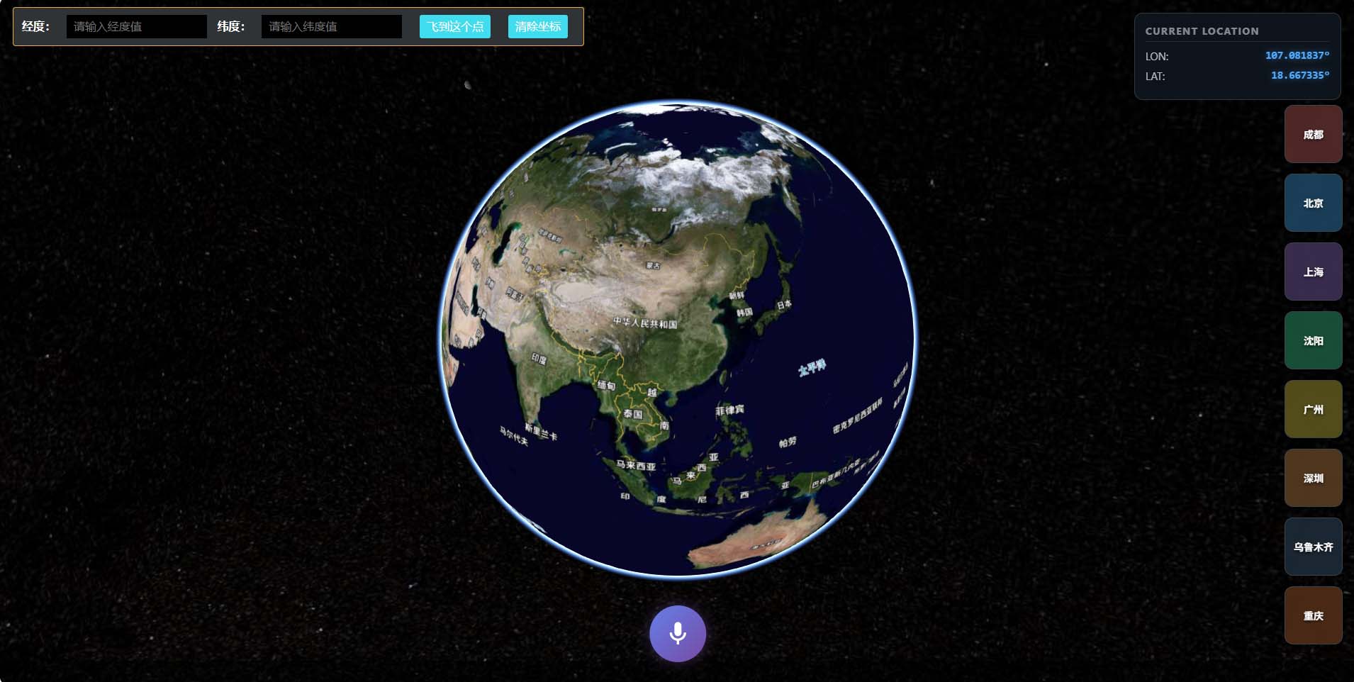 北斗卫星科普展馆掌上地球效果,支持语音交互、AI交互、预设城市视频展示,指定经纬度坐标自动跳转等