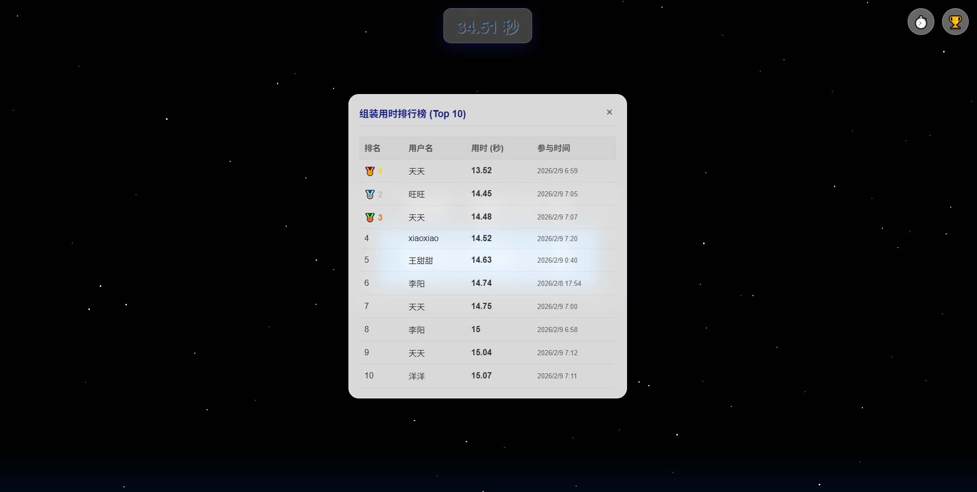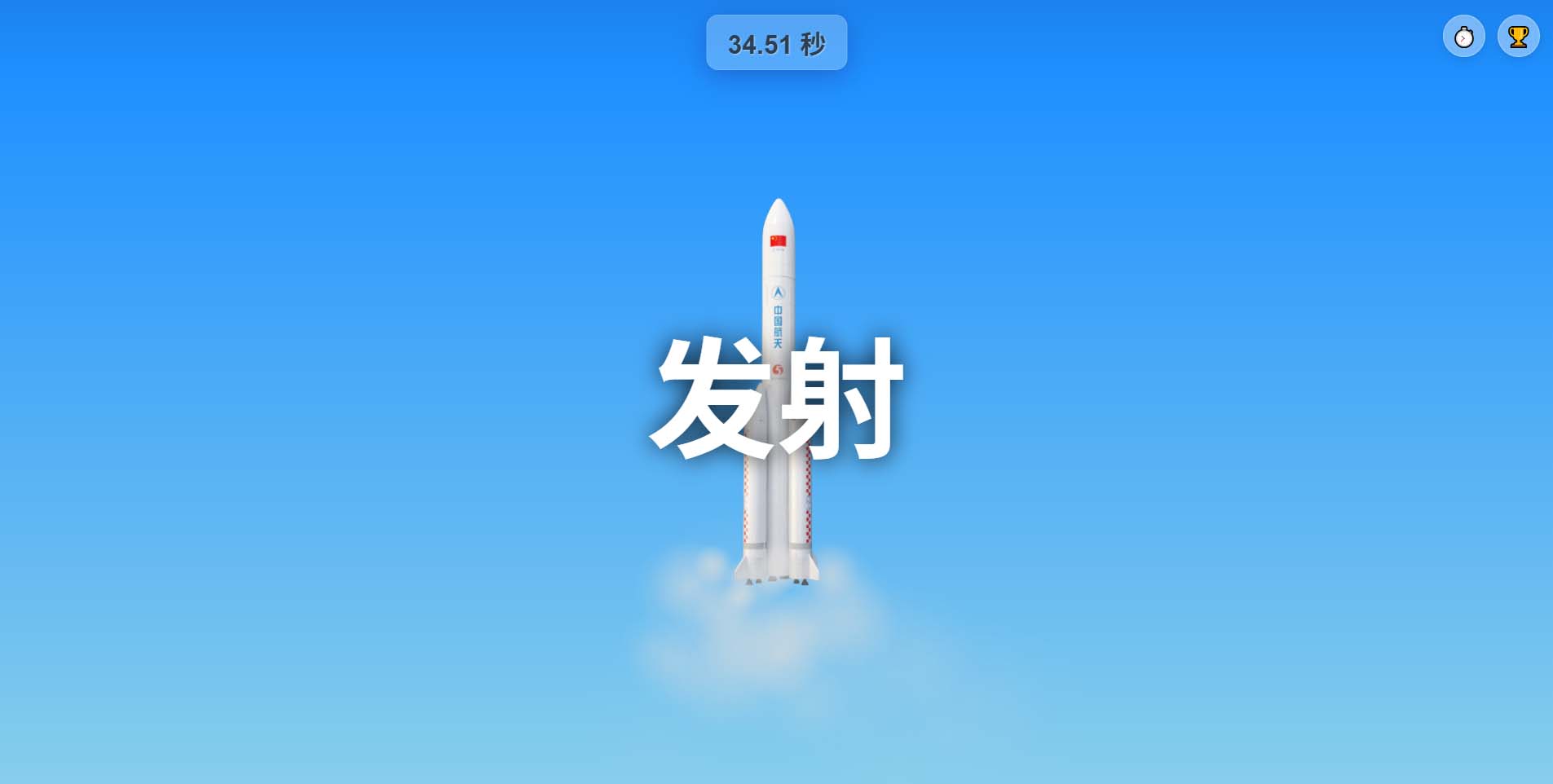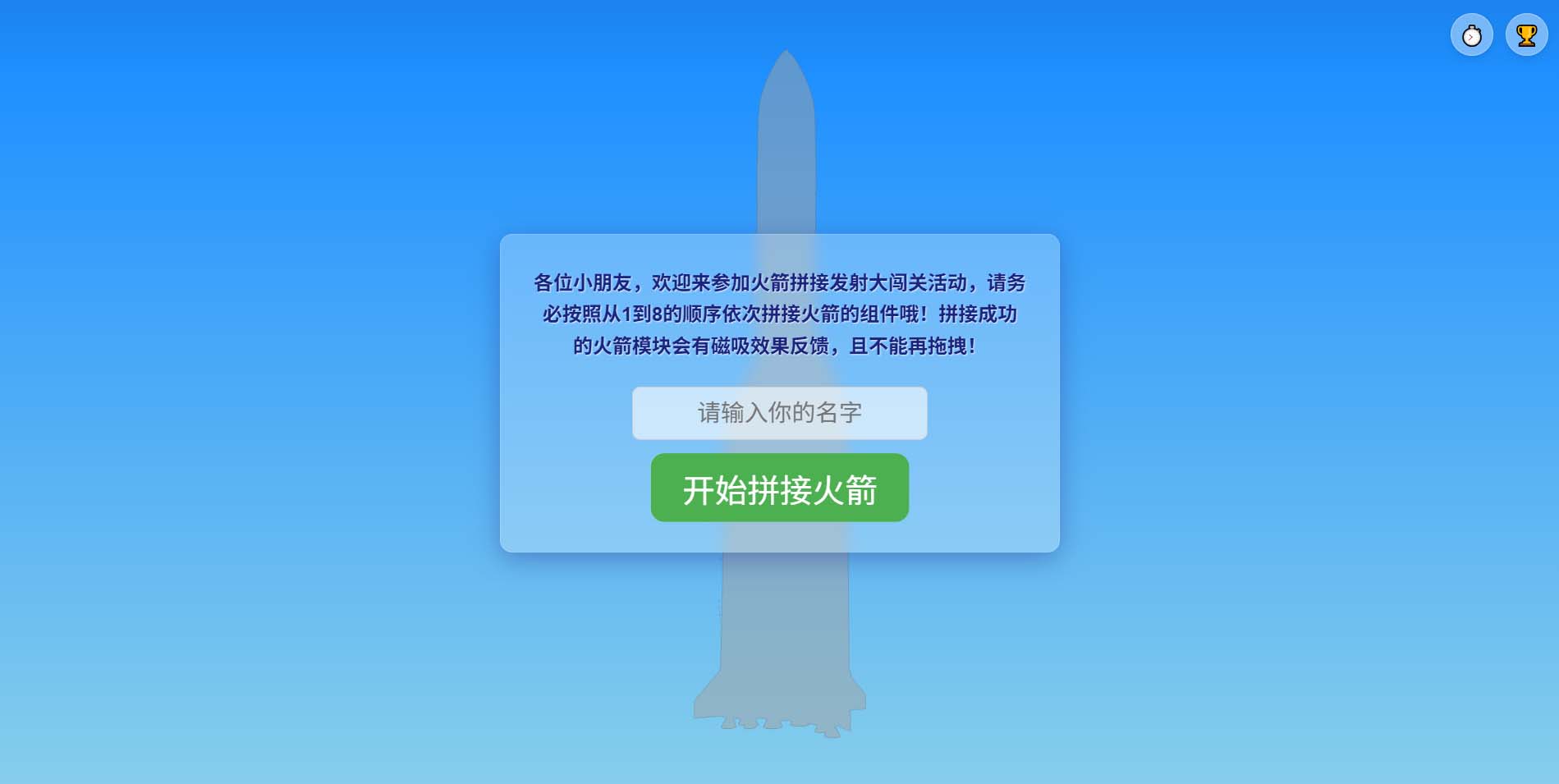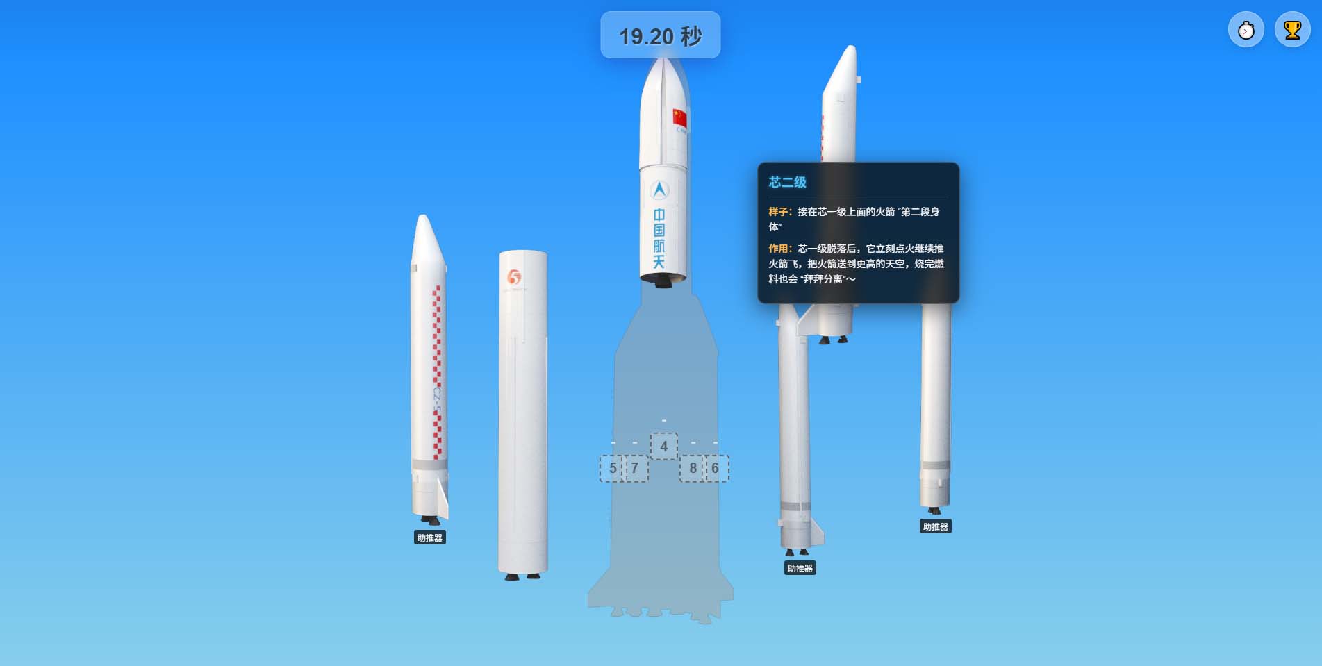 某北斗卫星科普展馆的火箭拼接发射大闯关游戏效果