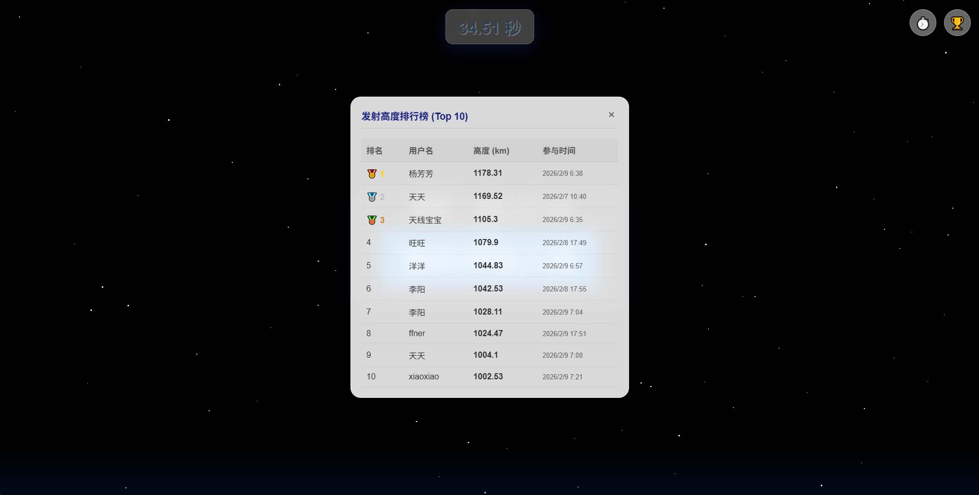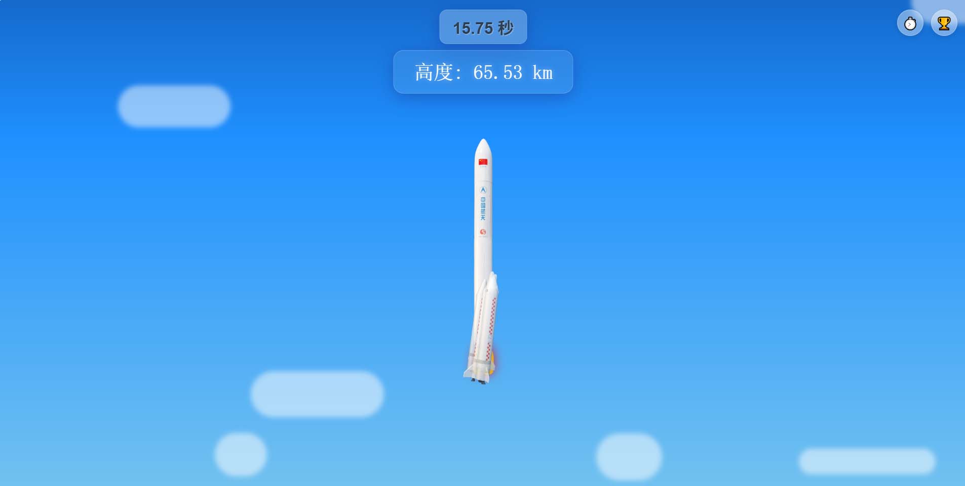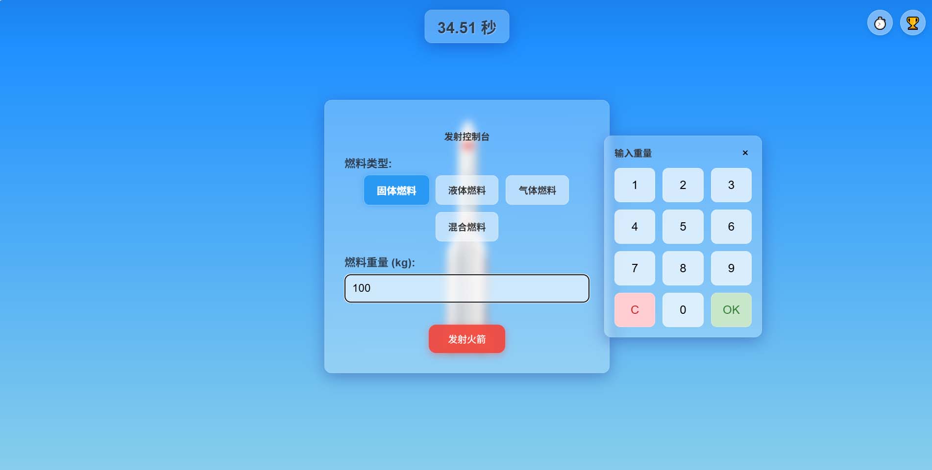 某北斗卫星科普展馆的火箭拼接发射大闯关游戏效果,支持拼接、设置燃料、发射倒计时、自动掉落助推器、自动掉落芯一级、自动掉落芯二级、不同高度的背景切换、组装排行榜、发射排行榜等