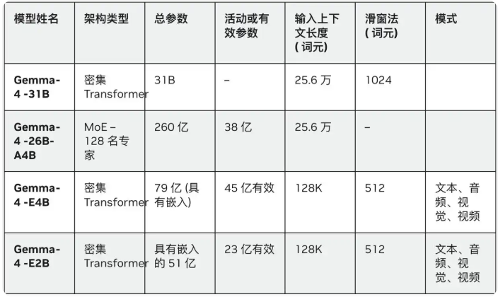 4 月 3 日凌晨,Google 推出了新一代开源模型 Gemma 4,包括 E2B、E4B、26B(MoE)、31B 「一门四杰」,其中 E2B、E4B 两个较小模型直接可以在手机、树莓派等设备上部署运行,26B、31B 两个较大模型也只需要一张消费级显卡就能跑起来。