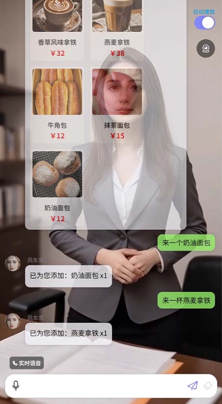 实时数字人交互点餐Demo,分为启动、点餐、查看订单、删除订单、支付结束几个节点。