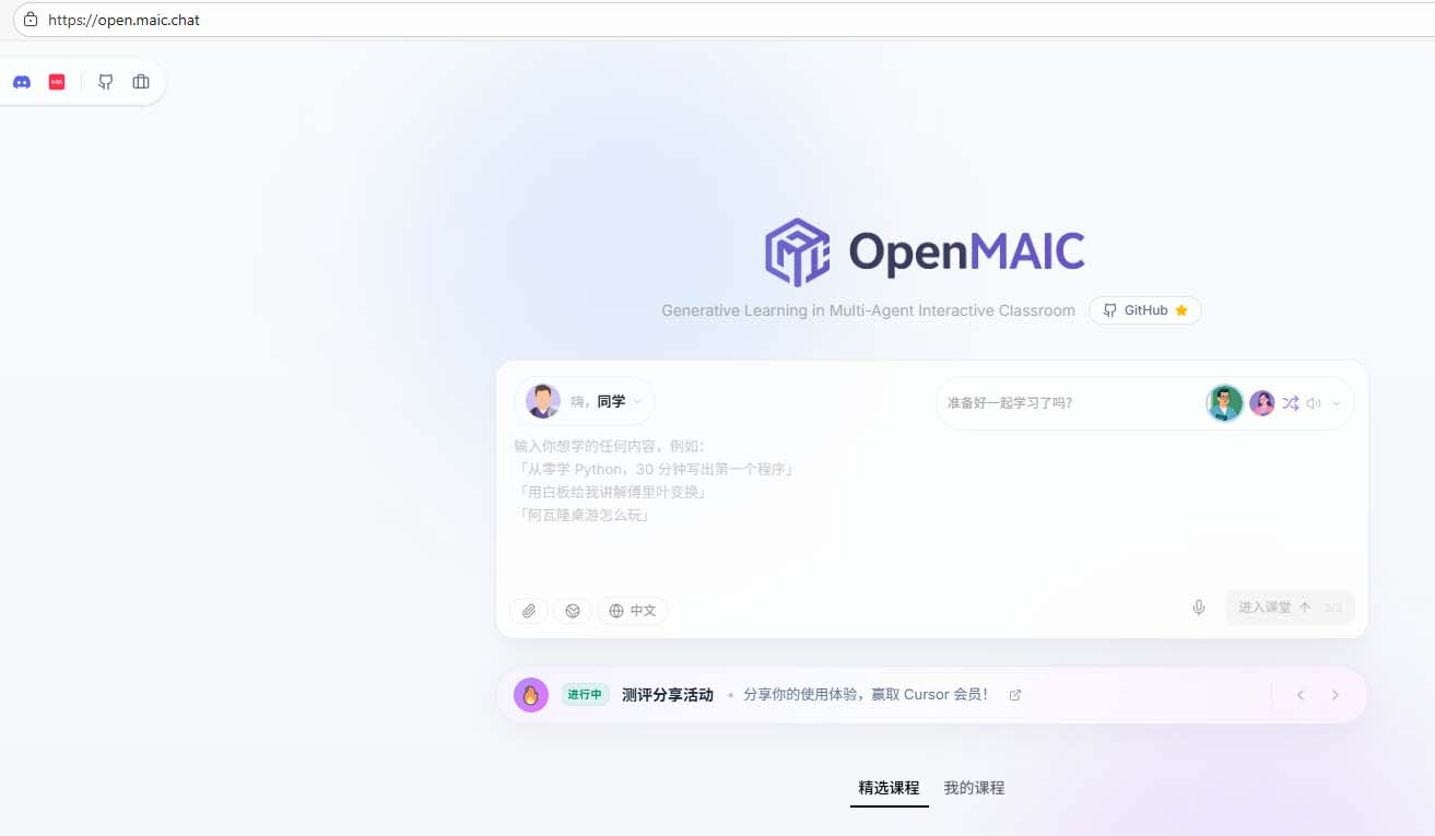 体验地址:https://open.maic.chat/