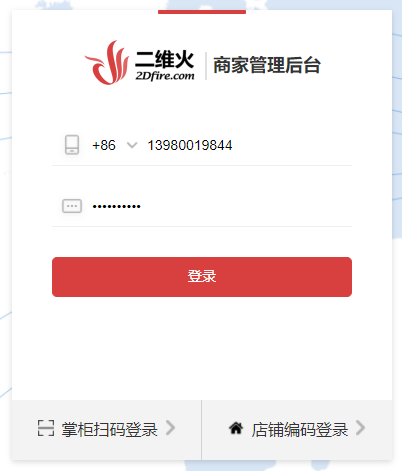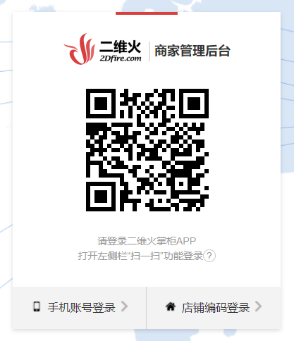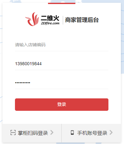 掌柜端扫码 手机号+密码 店编码+手机号+密码 三种方式。