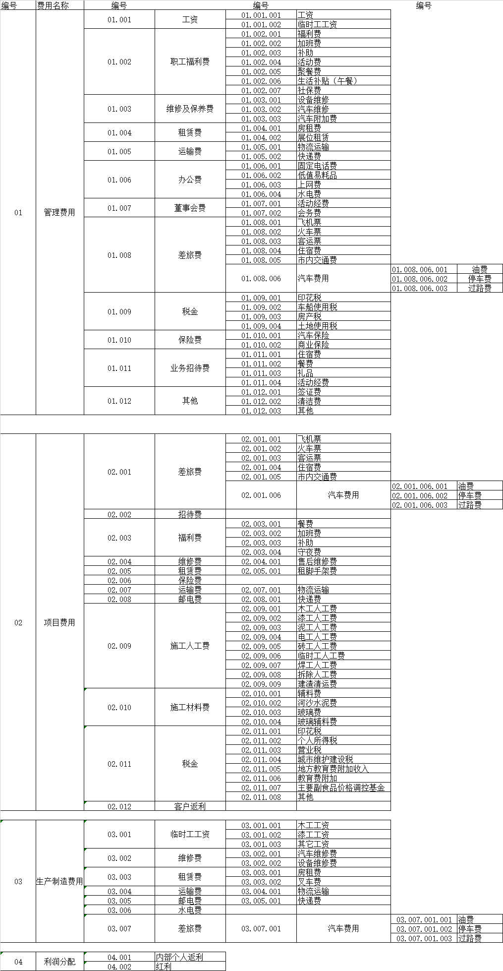 中小企业ERP中费用科目设置参考。