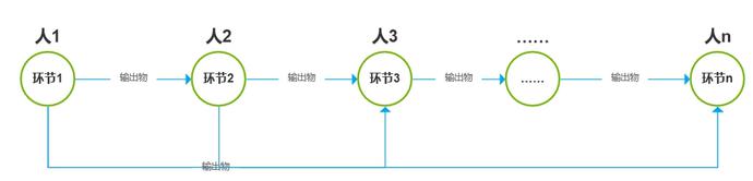 在这种分工的生产活动中,处于后置环节的“人”,对前置环节的“人”的输出物有着内在需求,正是因为这种内在需求,导致了输出物的流动,使输出物从供应方转向需求方,即“流”,也称“流程”。