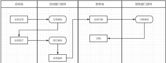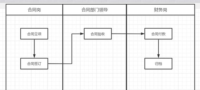 比如上图的合同工作流程,包含合同立项-合同签订-合同验收-合同付款-归档五个环节。