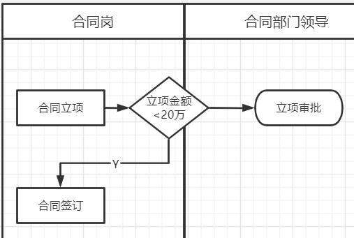比如合同立项,如果立项人员的立项权限是20万,合同立项金额低于20万则直接进入合同签订环节,否则进入立项审批环节。