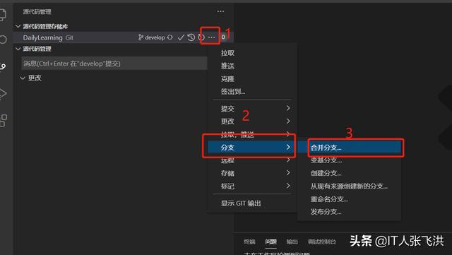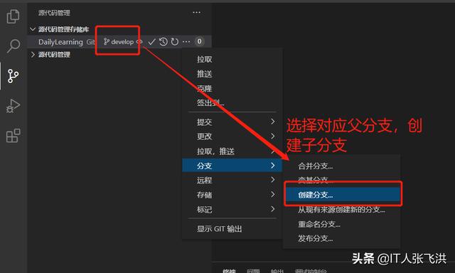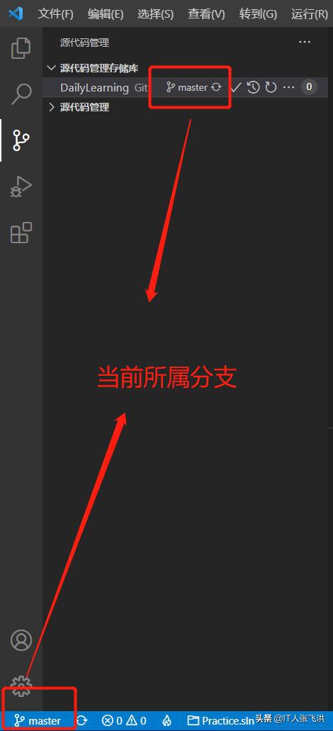 创建分支并推送到远程代码库: 1、切换到源代码管理视图: