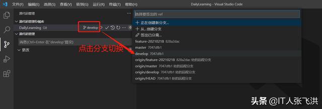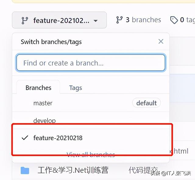 注意:我们这里为develop分支创建feature-20210218分支。