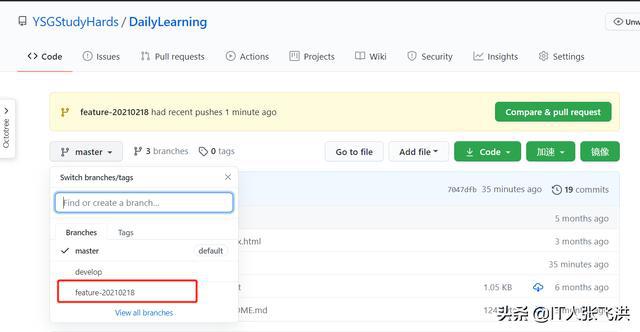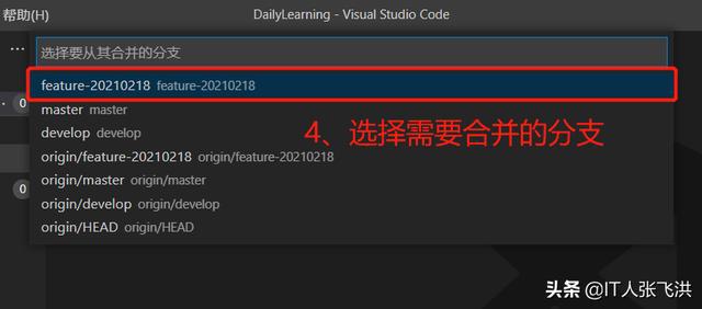 3、将feature-20210218子分支合并到develop开发分支: