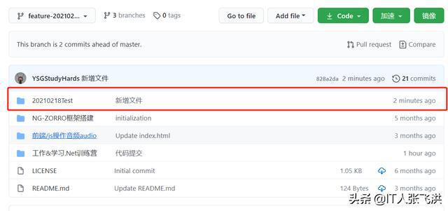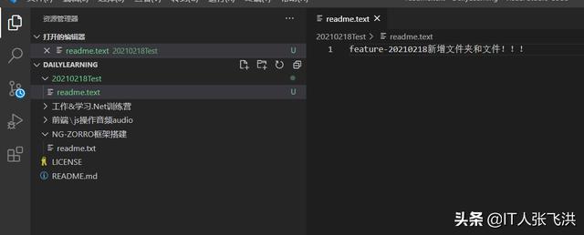 1、feature-20210218子分支中创建一个文件夹和一个文件:
