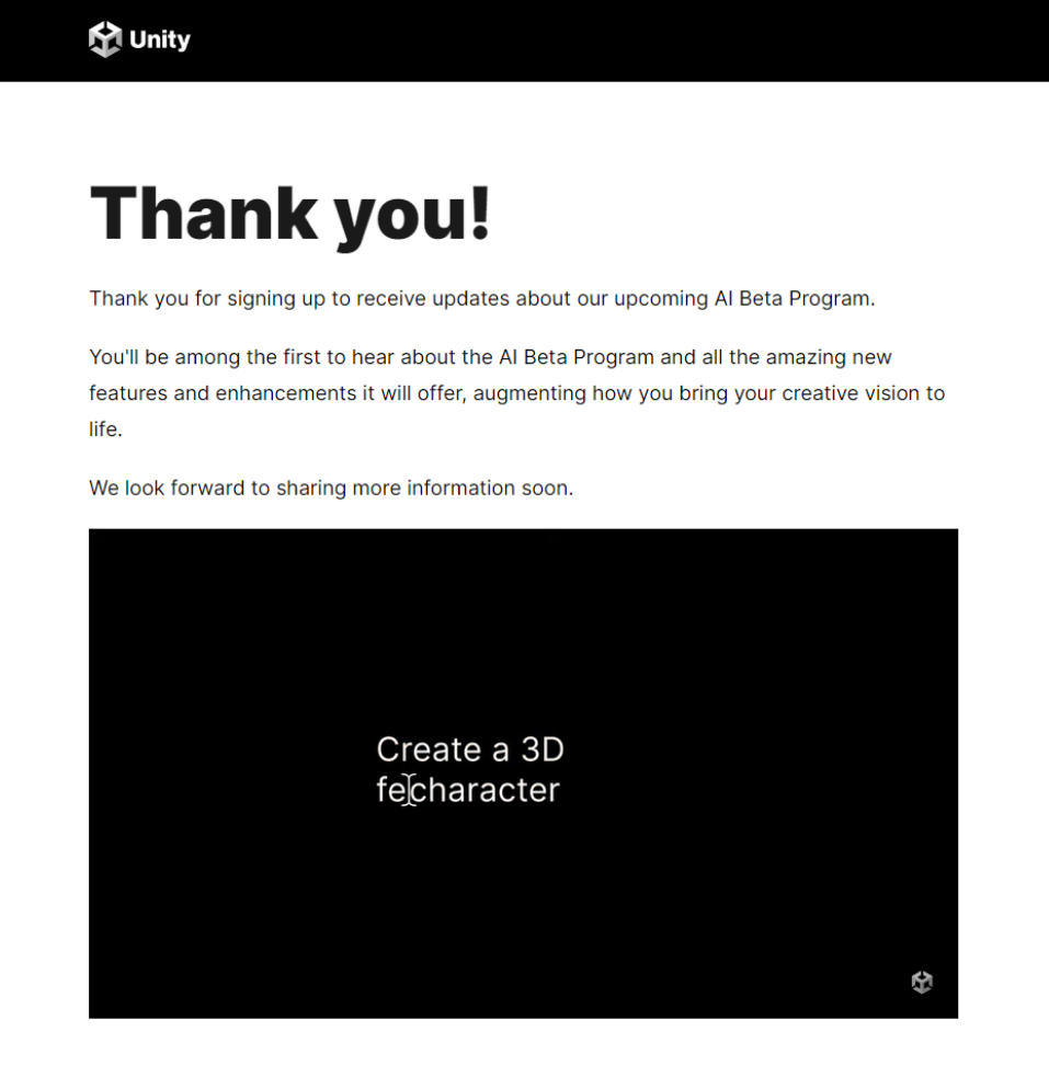 Unity3D AI视频内测开始,新的大招要来了?