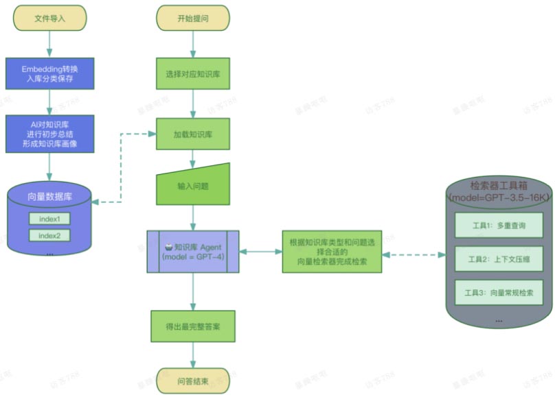 2. 用户针对知识库的提问,由GPT-4的AI Agent接管,由智能体先行分析问题后选择合适的检索器。