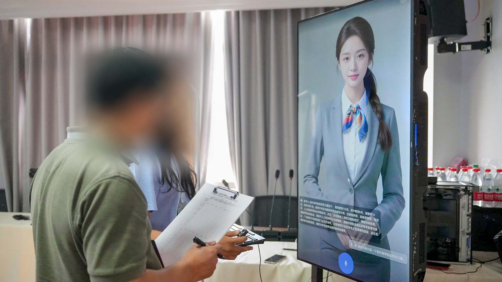 绵阳某大学语音实时交互数字人客户现场实拍[真人模型]